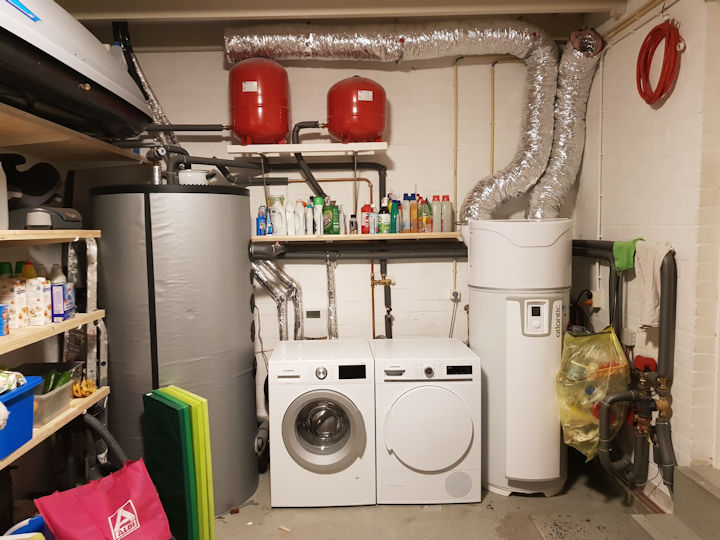 Ludo moet toegeven dat dit best een uitdagend project was. Een hoop leidingwerk, twee batterijen heatpipes, gescheiden circuits, een buffervat, expansievaten, driewegkleppen, aansluiten van de elektronische aansturing – daar was hij wel de nodige weekenden zoet mee. Maar ja, dan heb je ook wat. Gemeten via de logging op Mindergas.nl komt hij op een besparing op het totale gasverbruik van ca. 20 procent (ca. 300-400 m3 jaarlijks). Met daarnaast in de zomermaanden “gratis” warm water voor douche en bad. Omgerekend komt hij daarmee op een terugverdientijd van ca. 7 jaar. Daar wordt ie ook nog eens dagelijks aan herinnerd; de racks met “heatpipes” zijn nogal prominent zichtbaar. Tsja, je kunt niet alles hebben…